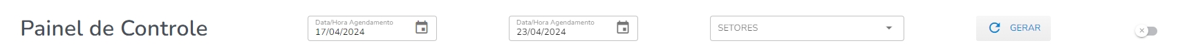Nessa primeira visão, você tem a opções de filtro que se alteram de acordo com o período inserido, setor selecionado, atendimentos privados ou de grupos.